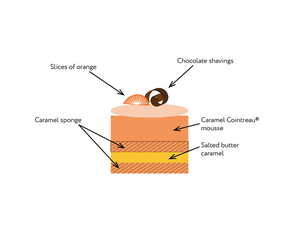 When it has set, add caramel Cointreau® mousse to the top of the frame. Place in the freezer.