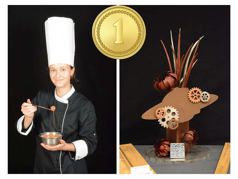 Chloé Mauroux, 21 ans, remporte le concours grâce à l’élégance et la maîtrise de sa pièce. Formée à Châtel-Saint-Denis, elle rejoindra bientôt l’entreprise Charlet à Gryon. Passionnée par la créativité et les saveurs, elle rêve d’élargir ses horizons à l’étranger.