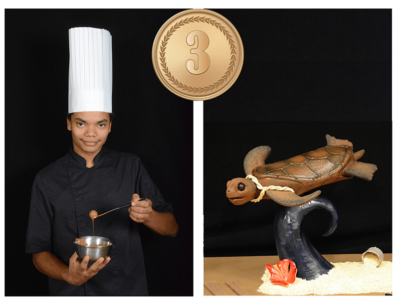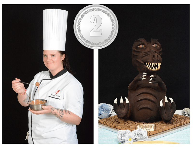 Jonathan Bettex décroche la troisième place. Fraîchement diplômé de son complément de formation en confiserie, il a su convaincre le jury par son enthousiasme et la qualité de son travail. Formé au sein de l’équipe Ackermann, Jonathan s’est montré particulièrement motivé pour mettre en valeur les compétences et les techniques qu’il a acquises et qu’il a perfectionnées.