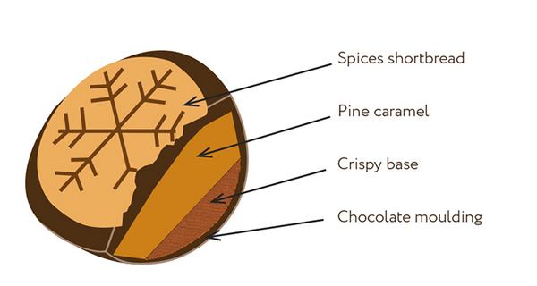 Prepare an infusion with cream and pine buds, heat to 80°C and