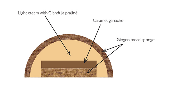 cream. Heat the mix. Leave to cool, then pour over the caramel milk couverture. Add the butter. Mix and add the gelatin leaves