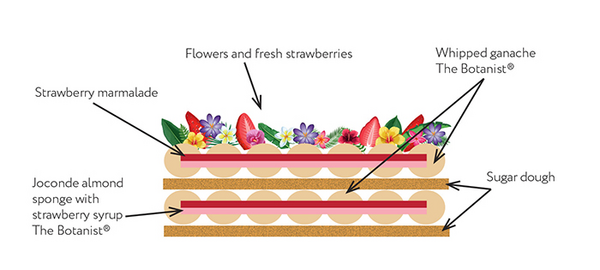 • Cut the Joconde sponge into small pieces, place into the middle of the The Botanist® whipped ganache.