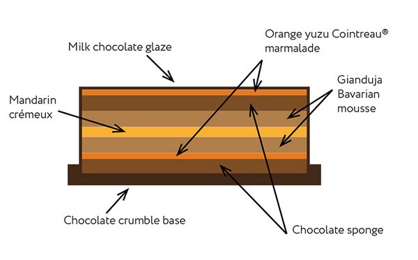 and pipe and cover with the Gianduja Bavarian mousse. Finally,