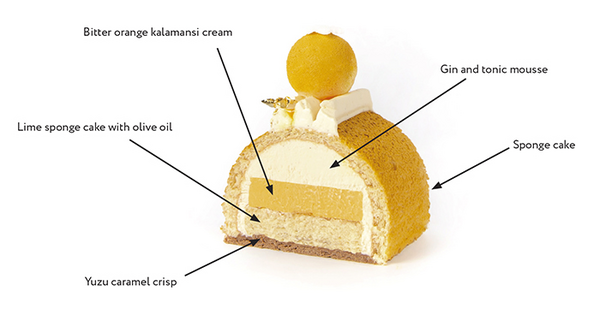 Cover with a lime and olive oil sponge cake and a final layer of gin