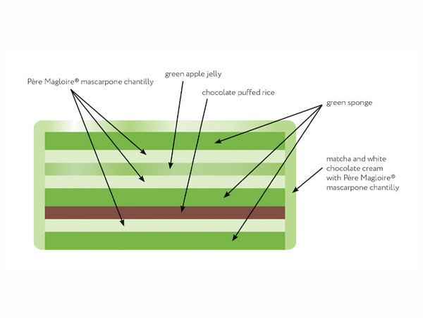 Pipe a third layer of Père Magloire® mascarpone chantilly, then cover with the last green sponge.