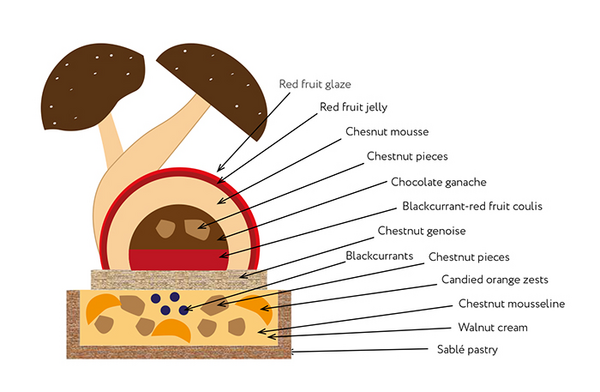 an Italian meringue. Combine the meringue with the chestnutcream mixture. Add the gelatine. Fold in the cream whipped to a