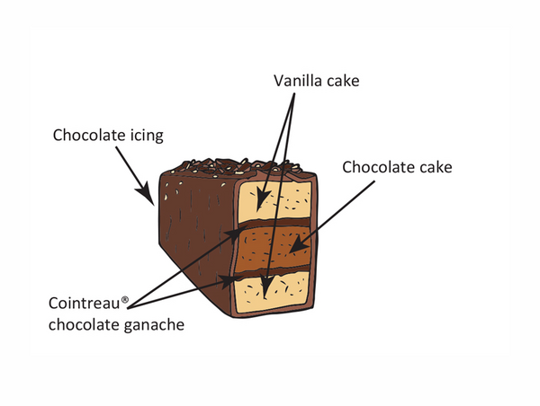 Cointreau® to 70°C. Pour over the chocolate and mix gently