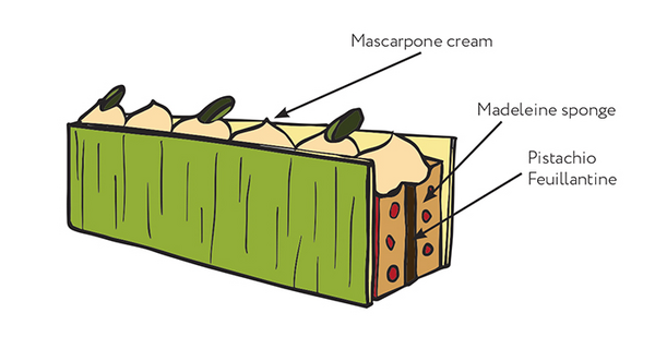 Melt the chocolate with the pistachio paste, then mix with