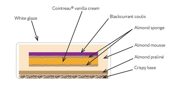 Smooth and freeze. Unmould the entremets, glaze and decorate.