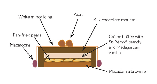 cover with milk chocolate mousse. Add the crème brûlée with