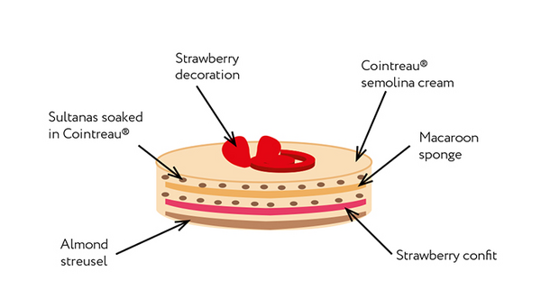 cream, a strawberry confit disc, and then a little more cream,