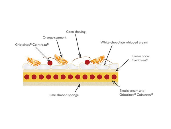 the lime almond sponge. Spread the Griottines® Cointreau® and