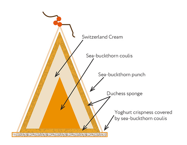 Continue to fill with the sea-buckthorn coulis into a spiral on the