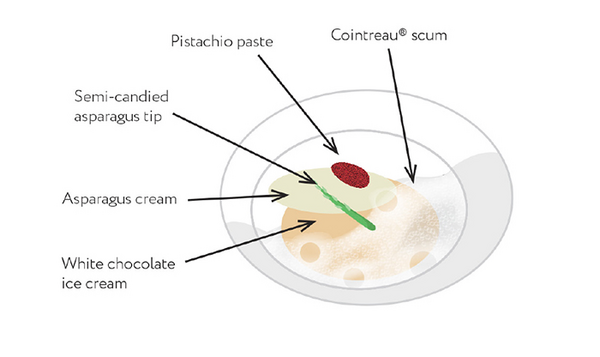 pistachio and white chocolate, then a semi-candied asparagus