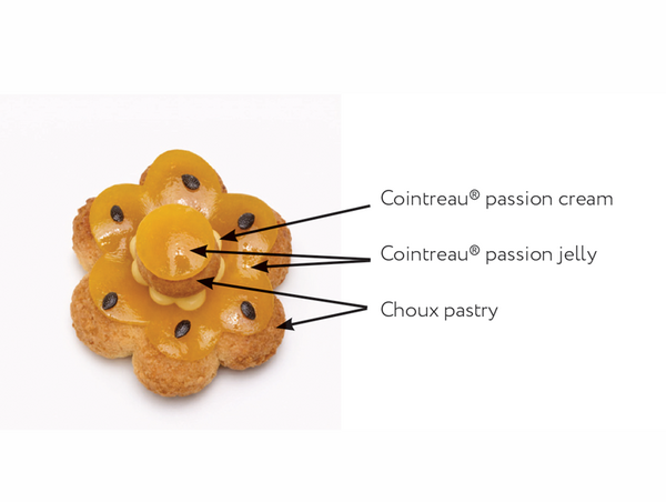 Pipe a 3-g circle of Cointreau® passion cream using a 4-mm nozzle.