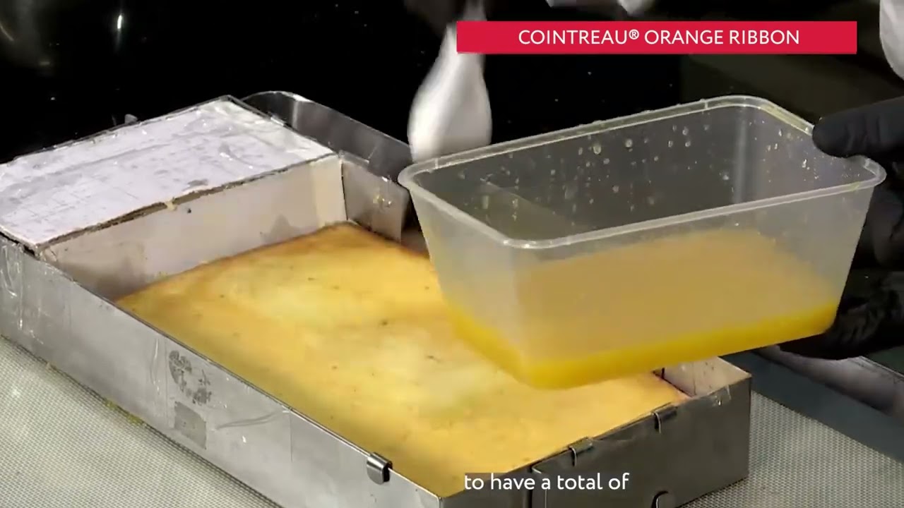 Alternate hazelnut sponge and Cointreau® orange pain de Gênes, sticking them together with a thin layer of Cointreau® orange ganache.