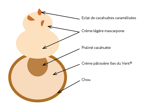 3) Garnir le centre de nos choux de praliné cacahuètes.