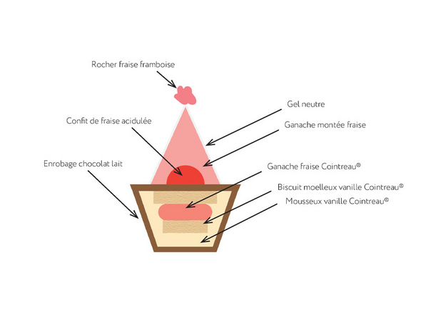 15 g de ganache fraise Cointreau® -> moule silicone demi-sphère ø 4 cm