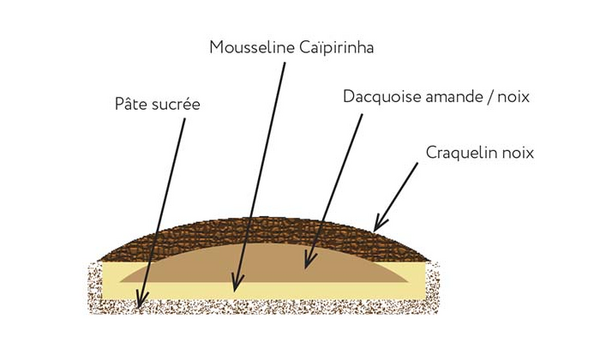 Garnir de mousseline Caïpirinha la base de pâte sucrée cuite