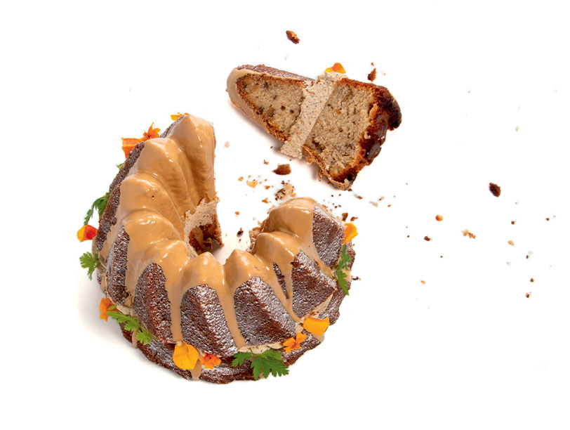 Glacer le cake avec du chocolat au carramel fondu à 45°C.