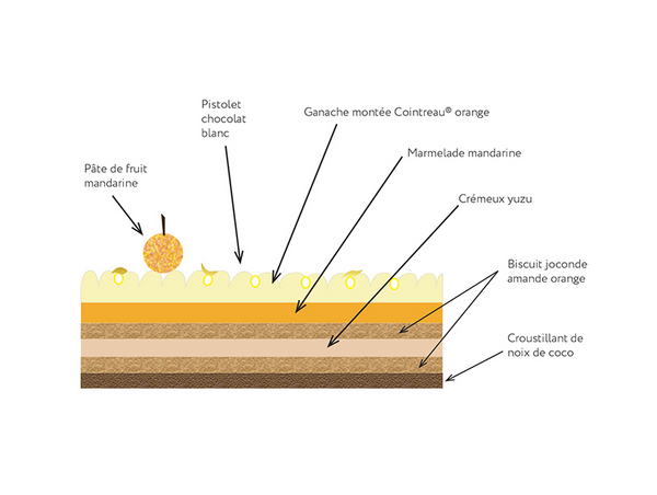 Étaler une fine couche de crémeux yuzu pour bien coller le