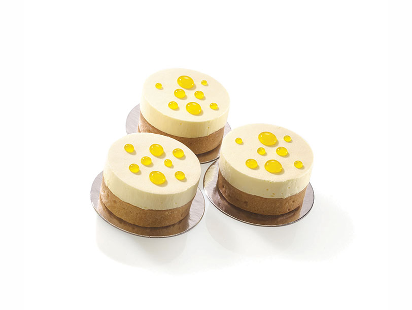 Diviser la recette par deux. Dresser la crème Cointreau® dans des cercles de 7 cm de diamètre et 1,5 cm de haut. Placer le tout au surgélateur et réserver pour la finition. Décor identique.